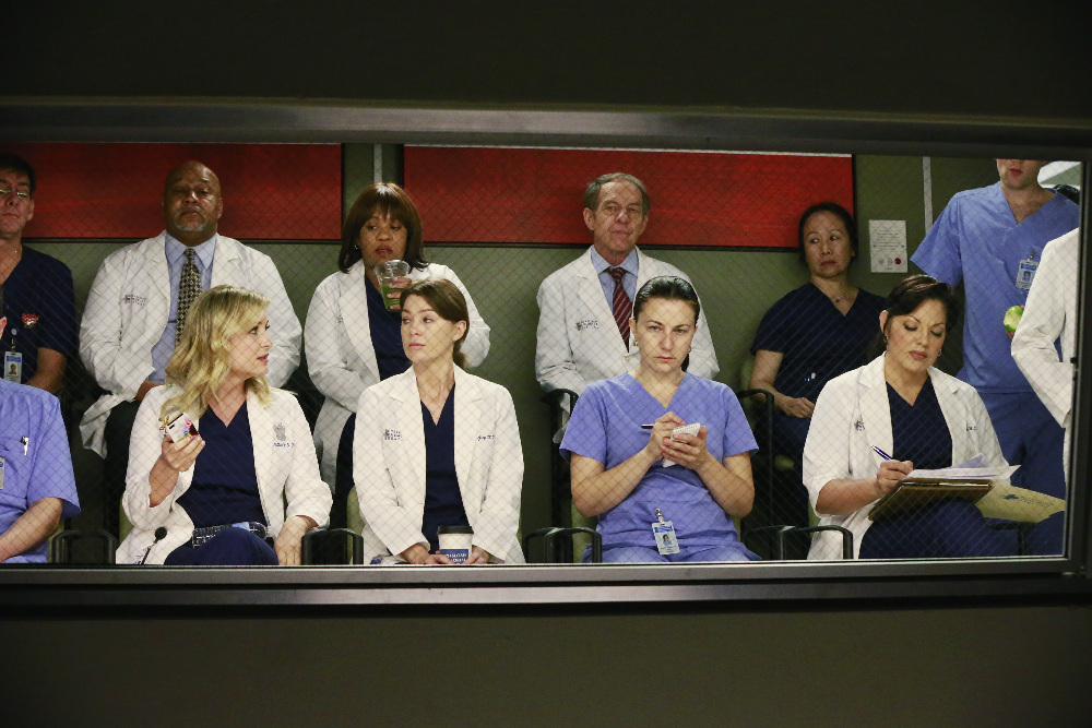 GREY'S ANATOMY - "Crazy Love" - Upon realizing that Owen and Amelia have been seeing each other behind her back, Meredith comes down hard on her sister-in-law causing Amelia to rethink things. Meanwhile, Catherine springs into action when a man is brought into the hospital after his wife seeks revenge on his cheating ways, on "Grey's Anatomy," THURSDAY, APRIL 9 (9:00-10:00 p.m., ET) on the ABC Television Network. (ABC/Mitchell Haaseth)JESSICA CAPSHAW, CHANDRA WILSON, ELLEN POMPEO, SARA RAMIREZ