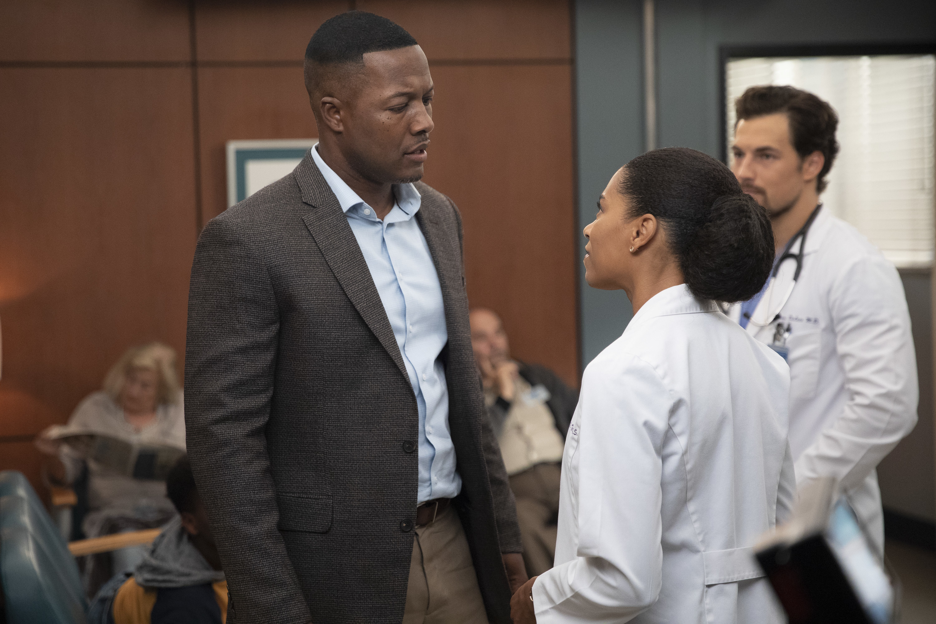 GREY'S ANATOMY - "Momma Knows Best" - Meredith turns heads when she shows up to work done up and ready for her blind date later that day, while Alex makes a questionable decision in order to save a patient. Meanwhile, the burden of knowing Teddy's secret keeps Maggie up at night, ultimately making her decide she has to tell someone, on "Grey's Anatomy," THURSDAY, OCT. 11 (8:00-9:01 p.m. EDT), on The ABC Television Network. (ABC/Rick Rowell)FLEX ALEXANDER, KELLY MCCREARY