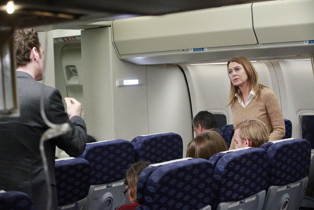 “In the Air Tonight” is the title of tonight’s (April 13) episode of Grey’s Anatomy, and in it, Meredith and Nathan have to confront their feelings when they are are stuck sitting next to each other on a plane.