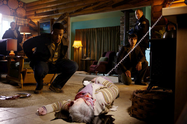 GRIMM -- "Last Grimm Standing" Episode 112 -- Pictured: (l-r) Russell Hornsby as Hank Griffin, David Giuntoli as Nick Burkhardt, Robert Blanche as Officer Franco -- (Photo by: Scott Green/NBC)