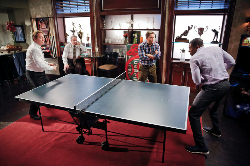 Hart of Dixie -- "Stuck" -- Image Number: HA321c_0226b.jpg -- Pictured (L-R): Alan Autry as Mayor Gainey, Kevin Brief as Todd, Scott Porter as George and Cress Williams as Lavon -- Photo: Greg Gayne/The CW -- © 2014 The CW Network, LLC. All rights reserved.