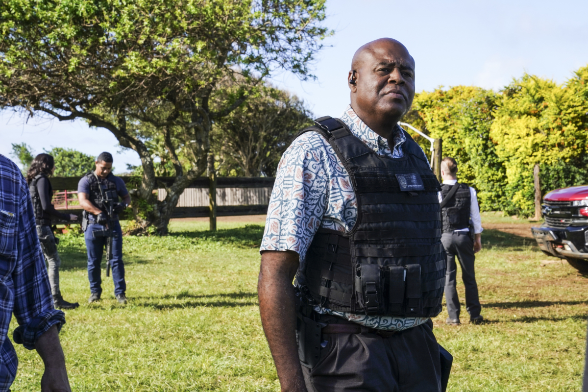 "E ho'i na keiki oki uaua o na pali" -- Five-0 investigates when a rancher is murdered after he uncovers human skeletons on his property where legend says that Civil War-era gold coins were buried. Also, Quinn's former stepdaughter, Olivia (Siena Agudong), reaches out to her for help after her father doesn't come home, on HAWAII FIVE-0, Friday, March 6 (9:00-10:00 PM, ET/PT) on the CBS Television Network. Jimmy Buffett returns as Frank Bama. Pictured: Chi McBride as Captain Lou Grover. Photo: Karen Neal/CBS ©2020 CBS Broadcasting, Inc. All Rights Reserved.