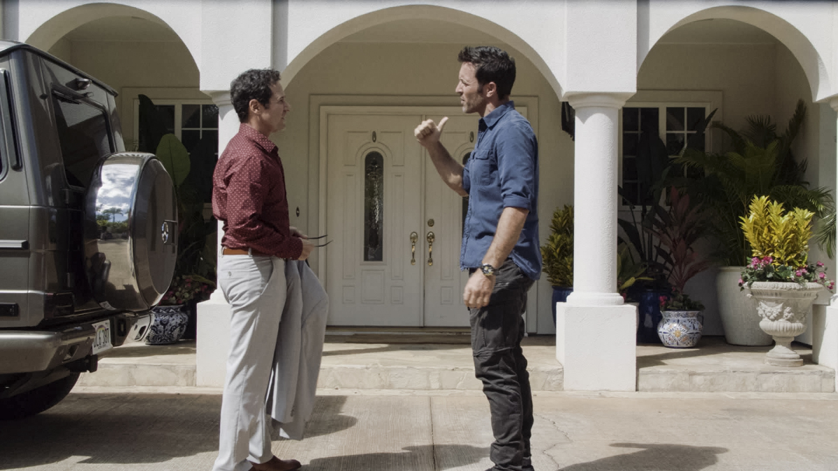 "E uhi ana ka wa i hala i na mea i hala" -- Five-0 investigates when a plane that mysteriously crashed into the Pacific in the '80s is found, but with a recently murdered scuba diver inside. Also, as MacGarrett and Quinn zero in on who planted the bomb in his garage, and he formally asks her to join Five-0, she is arrested for money laundering, on HAWAII FIVE-0, Friday, Oct. 11 (8:00-9:00 PM, ET/PT) on the CBS Television Network. Rob Morrow returns as Wes Cullen. Pictured: Alex O'Loughlin as Steve McGarrett. Photo: screengrab/CBS ©2019 CBS Broadcasting, Inc. All Rights Reserved ("E uhi ana ka wa I hala I na mea I hala" is Hawaiian for "Passing time obscures the past")