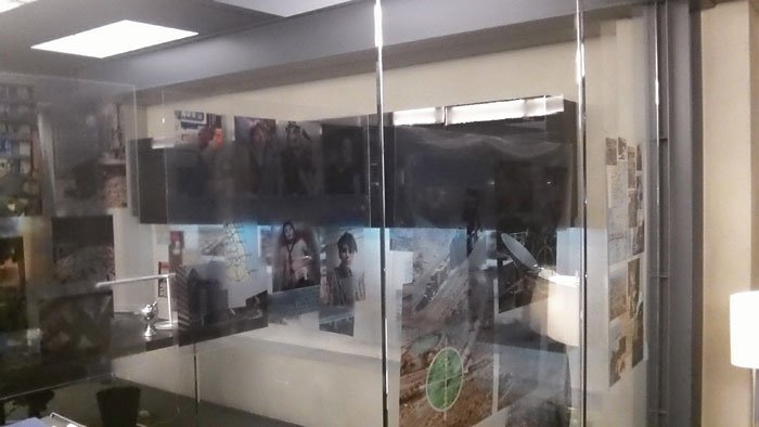 Below are photos that we took of the precinct set, as we received our tour from Mr. Thomas. You’ll notice that a lot of the set is very open with a lot of glass windows. The glass windows would actually turn so that there would be no reflections from the glass on the camera.