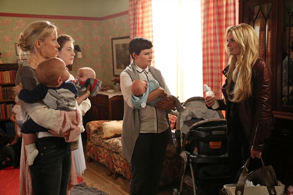ONCE UPON A TIME - "The Snow Queen" - Emma captures the Snow Queen and interrogates her at the sheriff's station. But the Snow Queen uses her prior knowledge of Emma to try to persuade her into thinking that they are more alike than she could possibly imagine. Regina and Robin Hood's relationship grows increasingly complex as they struggle to find a way to save his dying wife, Emma begins to see what she missed out on by not growing up and being a family with Snow and Charming when she sees how involved Mary Margaret is in baby Neal's life, and Henry begins his after school job in Gold's shop while trying to help Regina find a clue to the identity of the author of the storybook. Meanwhile, in Arendelle of the past, we learn about the origin of the Snow Queen and her familial connection to Elsa and Anna as we see her discover her spectacular yet deadly ice powers, on "Once Upon a Time," SUNDAY, NOVEMBER 9 (8:00-9:00 p.m., ET) on the ABC Television Network. (ABC/Jack Rowand) JESSY SCHRAM, SARAH BOLGER, GINNIFER GOODWIN, JENNIFER MORRISON