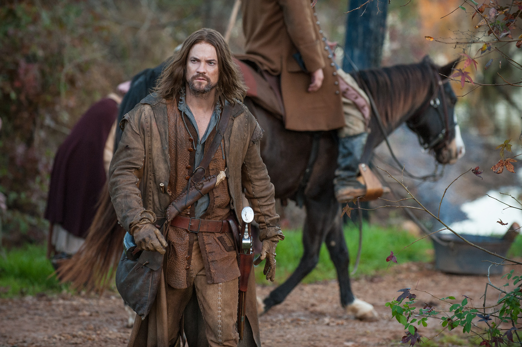 On Salem, West plays John Alden, a soldier from the first generation of Americans who comes back as a war hero who survived. “He went through a lot that we don’t quite know yet, and we didn’t explore yet, of being a prisoner of war for at least a year, and then tortured,” Shane explained to us in January at a press event for the show. “He had been this brash, heroic young person before he took off to war, when he was still with Mary Sibley and thought that they were going to be together forever. When he comes back, he’s definitely jaded. He’s more hardened,” West said.