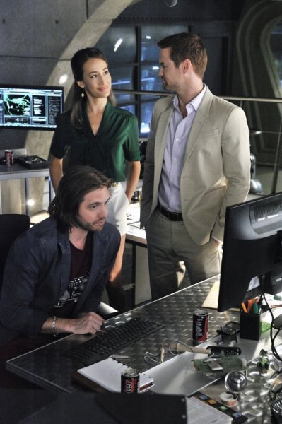Nikita -- "Innocence" -- Image NK303a_0129 – Pictured (L-R): Aaron Stanford as Birkoff, Maggie Q as Nikita, and Shane West as Michael -- Credit: Ben Mark Holzberg/The CW -- ©2012 The CW Network. All Rights Reserved.