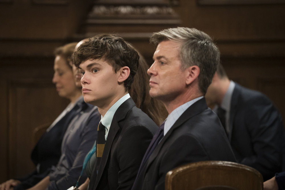 WALLACE LANGHAM AND CALLIE THORNE GUEST STAR — A man (Langham) tears a family apart when he uses a prominent fake identity to lure a vulnerable wife and mother into his bed. Barba (Raul Esparza) argues that the evidence amounts to rape, but he’s faced with a powerful defense attorney (Thorne) and a skeptical judge (guest star Vincent Curatola) in court. Also starring Mariska Hargitay (Lt. Olivia Benson), Ice T (Det. Odafin Tutuola), Kelli Giddish (Det. Amanda Rollins) and Peter Scanavino (Det. Sonny Carisi). Also guest starring Paula Marshall (Laura Collett), Chris Henry Coffey (James Collett) and Conor Proft (Justin Collett). TV-14 D, S