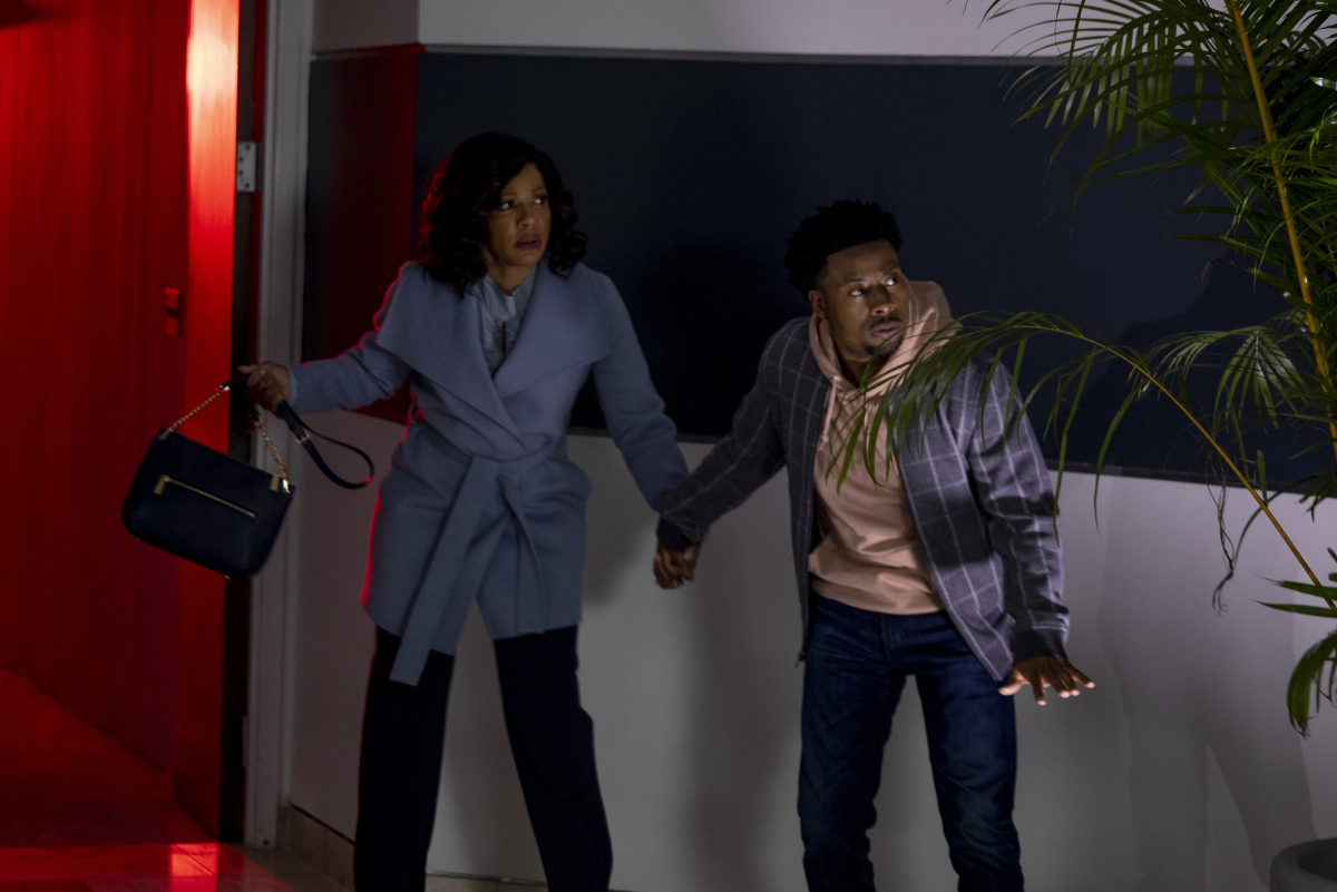 “H20 + Orthophosphates + Mission City + Corrosion + Origins” – Mac and Desi travel with Bozer to his childhood home when his aunt dies in a tragic accident, however, they soon discover she may have been murdered for trying to expose the city’s contaminated water supply. Also, Riley, Matty and Russ continue to follow leads on their nano-trackers investigation, on MACGYVER, Friday, April 16 (8:00-9:00 PM, ET/PT) on the CBS Television Network. Ernie Hudson and Wendy Raquel Robinson guest star as Bozer’s parents.Pictured: Justin Hires as Wilt Bozer, Wendy Raquel Robinson. Photo: Fernando Decillis/CBS ©2021 CBS Broadcasting, Inc. All Rights Reserved.