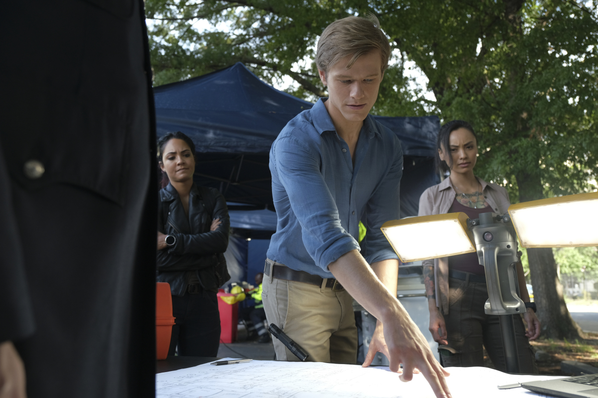 MacGyver stars Lucas Till (Angus “Mac” MacGyver), Tristin Mays (Riley Davis), Justin Hires (Wilt Bozer), Meredith Eaton (Matty Weber), Levy Tran (Desi Nguyen), and Henry Ian Cusick (Russ Taylor).