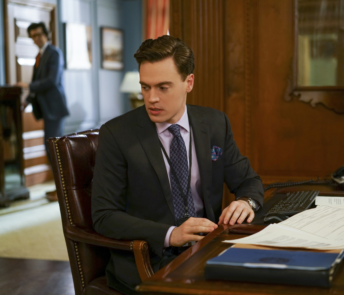 "The Seventh Floor"- Elizabeth and her team work to secure the release of an American journalist held hostage in the Sudan, on MADAM SECRETARY, Sunday, May 7 (9:00-10:00 PM, ET/PT) on the CBS Television Network. Pictured L-R: Geoffrey Arend as Matt Mahoney and Erich Bergen as Blake Moran Photo: Sarah Shatz/CBS é2017 CBS Broadcasting, Inc. All Rights Reserved