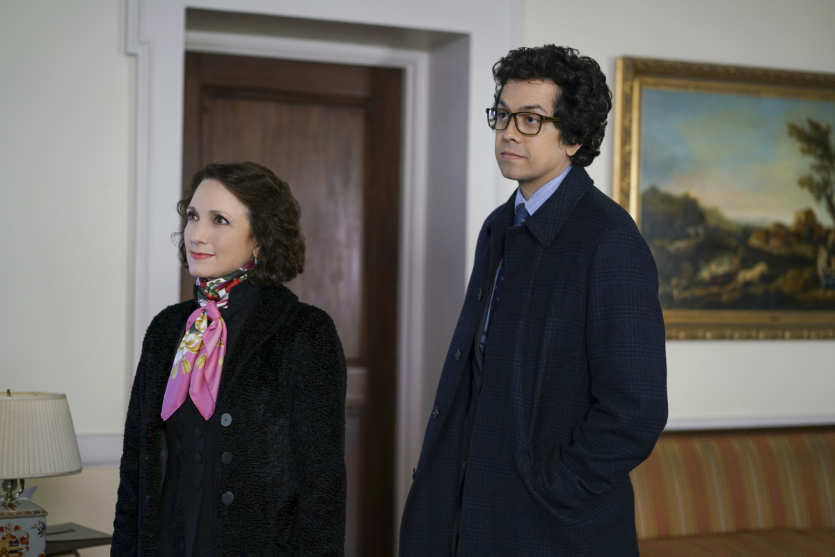 "Revelation"- As Elizabeth and President Dalton head to Rome for the G20 Conference, she is concerned for Henry's safety when he is sent to Israel to intercept the doomsday cult's bio-weapon before it is deployed. Also, Blake reveals a personal secret to Elizabeth, and Elizabeth goes behind Stevie's back to ask Russell to get her off Harvard Law School's waiting list, on MADAM SECRETARY, Sunday, May 14 (9:00-10:00 PM, ET/PT) on the CBS Television Network. Pictured L-R: Bebe Neuwirth as Nadine Tolliver and Geoffrey Arend as Matt Mahoney Photo: Sarah Shatz/CBS é2017 CBS Broadcasting, Inc. All Rights Reserved