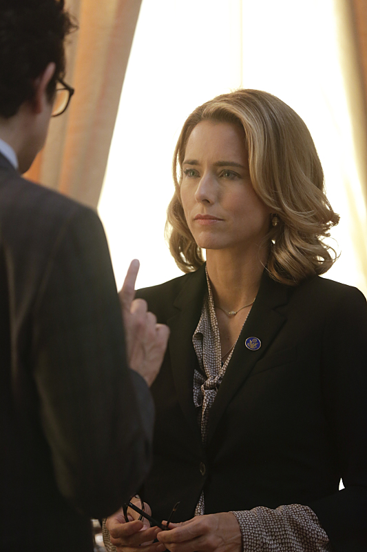 Passage -- When Elizabeth brings Alison with her to India on her first state department trip abroad, she's thrown into crisis mode when a massive earthquake hits that causes an explosion at an American-owned factory, and she's separated from Alison during the chaos, on MADAM SECRETARY, Sunday, Nov. 2 (8:31-9:30 PM, ET/8:01-9:00 PM, PT) on the CBS Television Network. Elizabeth McCord (Téa Leoni), shown. Photo: Patrick Harbron/CBS ©2014 CBS Broadcasting, Inc. All Rights Reserved