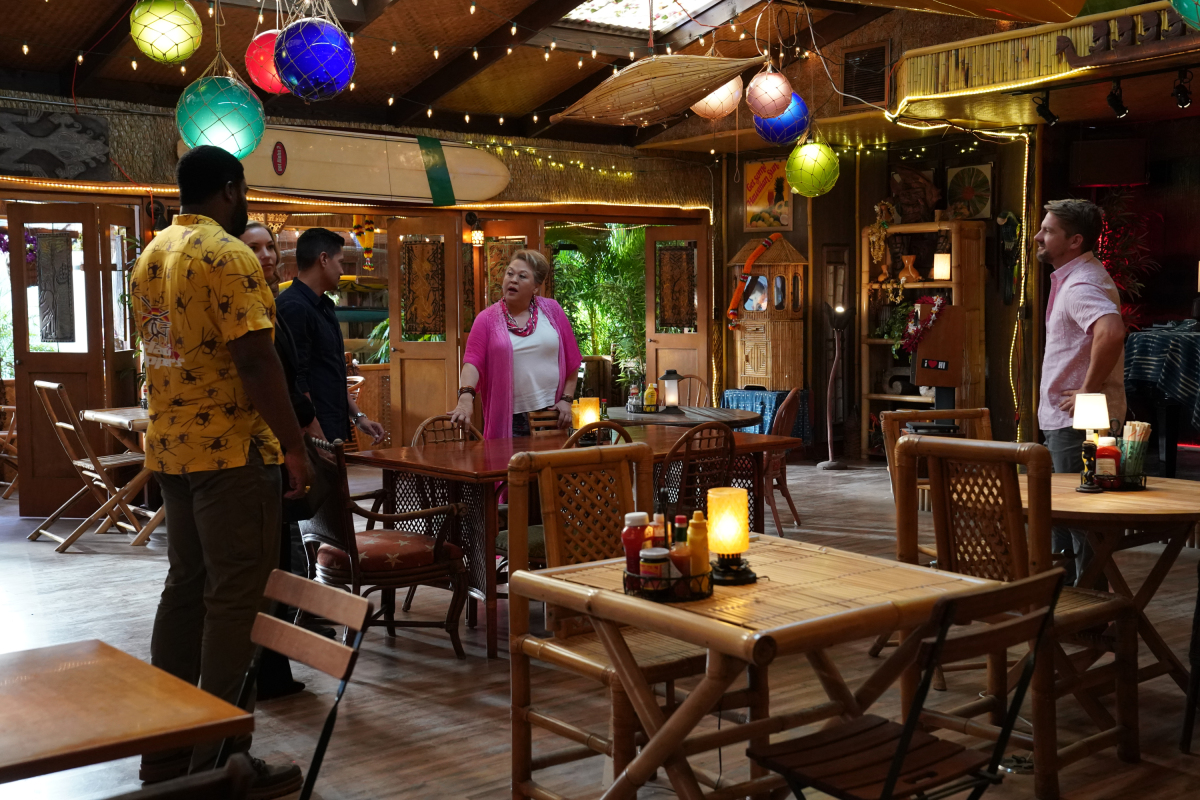 "Honor Among Thieves" - An incorrigible pickpocket (guest star Bobby Lee) asks Magnum for help when a stolen cell phone he had recently lifted suddenly receives a very suspicious text message. Also, Magnum is frustrated when Higgins still won't give him an answer whether or not she will become his partner and when Rick decides to make a bold career move, T.C. comes to the rescue, on MAGNUM P.I., Friday, Oct 4 (9:00-10:00 PM, ET/PT) on the CBS Television Network. Pictured L-R: Stephen Hill as Theodore 'TC' Calvin, Perdita Weeks as Juliet Higgins, Jay Hernandez as Thomas Magnum, Amy Hill as Teuila 'Kumu' Tuileta, and Zachary Knighton as Orville 'Rick' Wright Photo: Karen Neal/CBS ©2019 CBS Broadcasting, Inc. All Rights Reserved