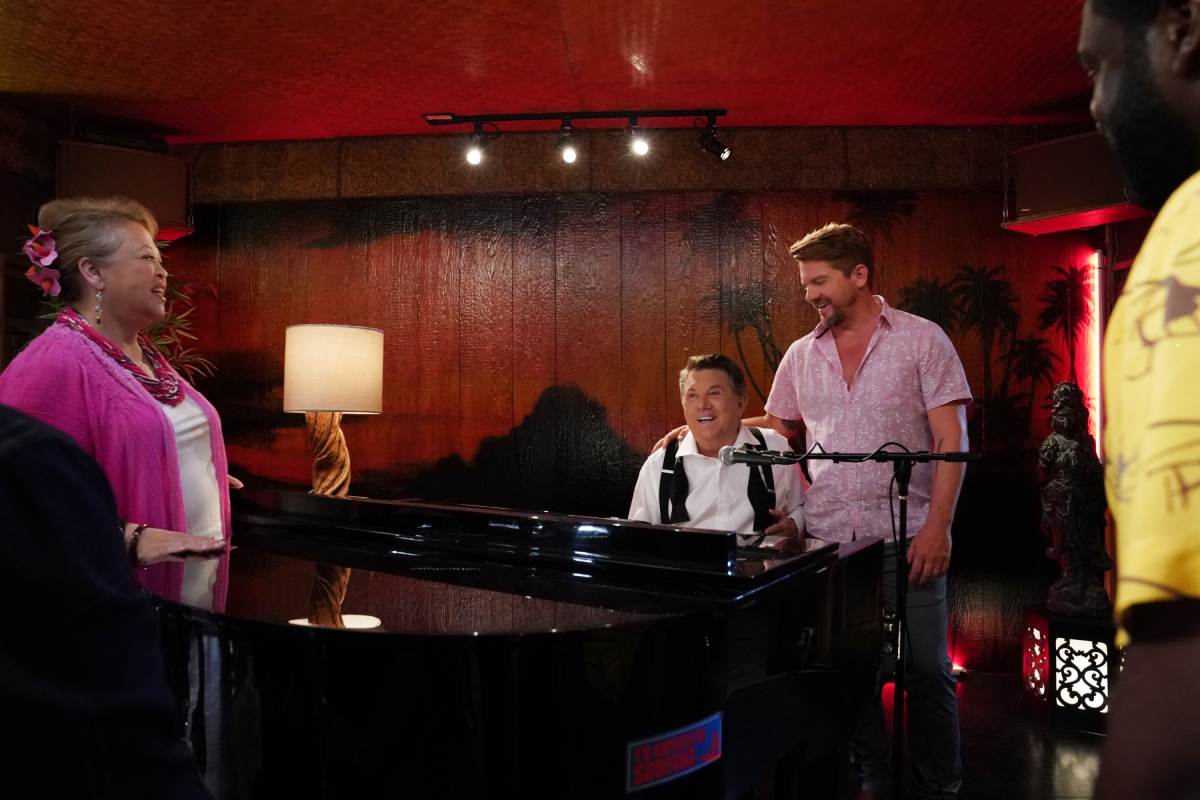"Honor Among Thieves" - An incorrigible pickpocket (guest star Bobby Lee) asks Magnum for help when a stolen cell phone he had recently lifted suddenly receives a very suspicious text message. Also, Magnum is frustrated when Higgins still won't give him an answer whether or not she will become his partner and when Rick decides to make a bold career move, T.C. comes to the rescue, on MAGNUM P.I., Friday, Oct 4 (9:00-10:00 PM, ET/PT) on the CBS Television Network. Pictured L-R: Amy Hill as Teuila 'Kumu' Tuileta, Larry Manetti as Nicky 'The Kid' Demarco, Zachary Knighton as Orville 'Rick' Wright, and Stephen Hill as Theodore 'TC' Calvin Photo: Karen Neal/CBS ©2019 CBS Broadcasting, Inc. All Rights Reserved