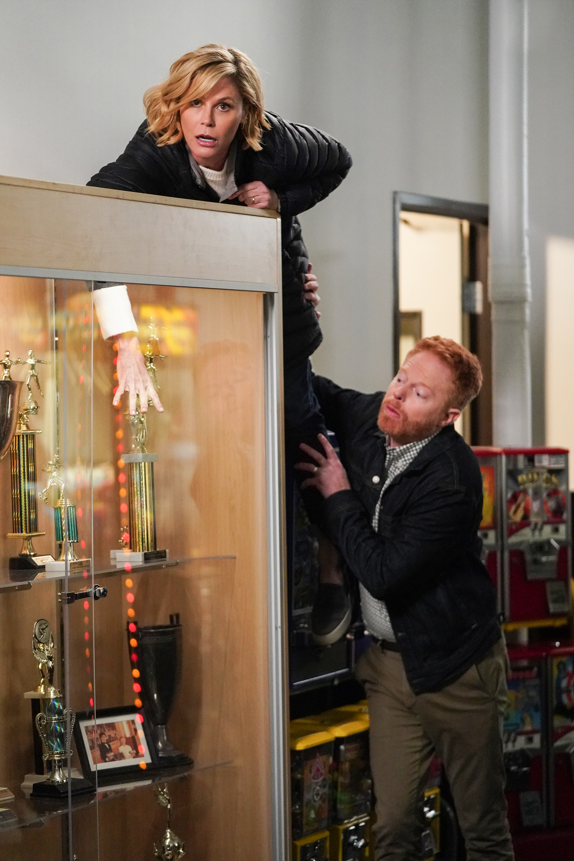 MODERN FAMILY - "Finale Part 1/Finale Part 2" - In part 1 of the series finale, Mitchell and Cam settle in on their new normal, and Phil and Claire decide that one of the kids needs to move out in order to take control of the house again. Meanwhile, as Gloria becomes more successful at work, she notices Jay, Manny and Joe don't seem to need her as much. In part 2 of the series finale, the entire family discovers saying goodbye is much harder than it seems on "Modern Family," WEDNESDAY, APRIL 8 (9:00-10:00 p.m. EDT), on ABC. (ABC/Eric McCandless)JULIE BOWEN, JESSE TYLER FERGUSON
