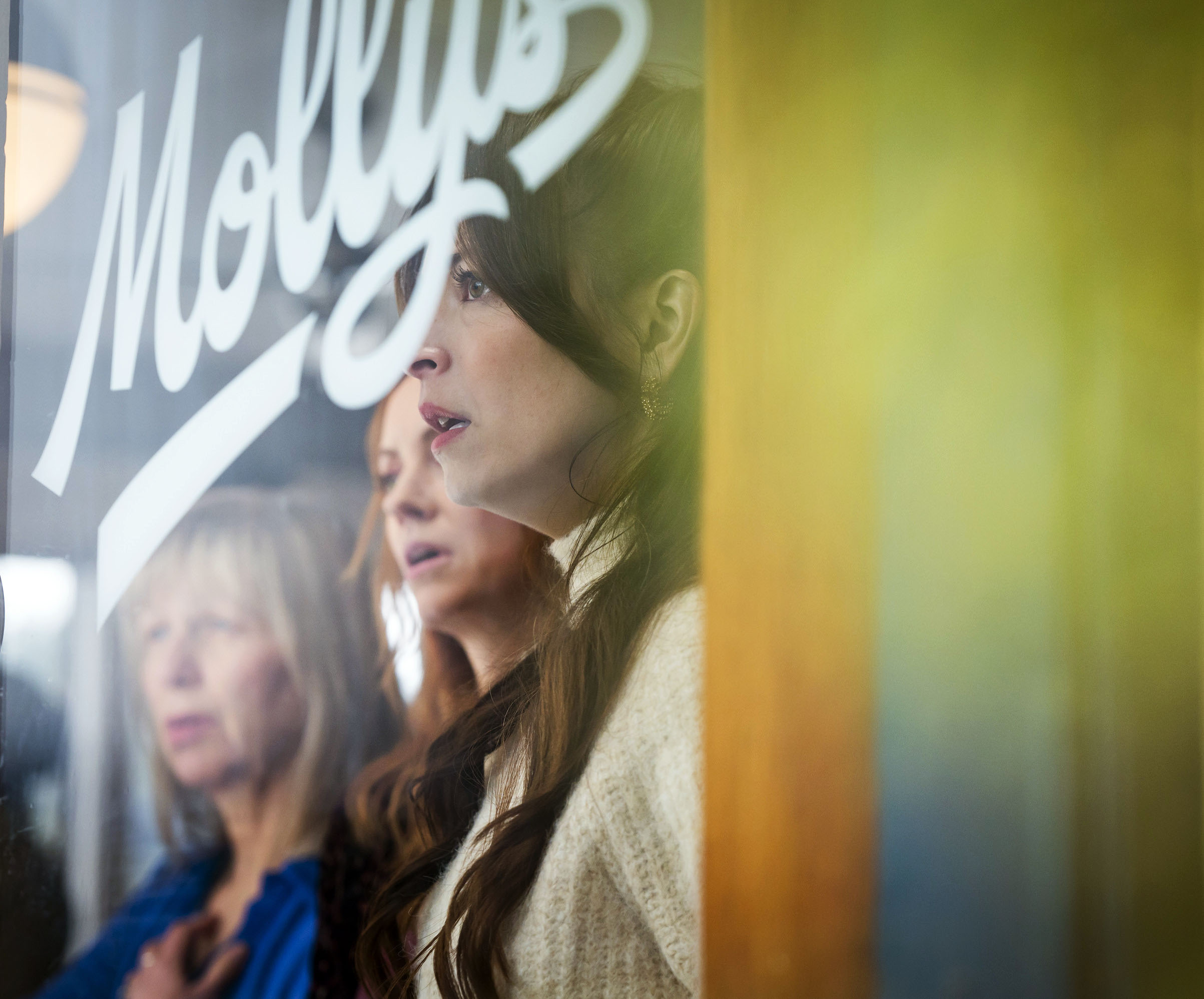 MURDER IN A SMALL TOWN: Kristin Kreuk (R) in The “Fall From Grace” episode of MURDER IN A SMALL TOWN airs Tuesday, October. 1 (8:00-9:00 PM ET/PT) on FOX. ©2024 Fox Media LLC. CR: Kailey Schwerman/ FOX.