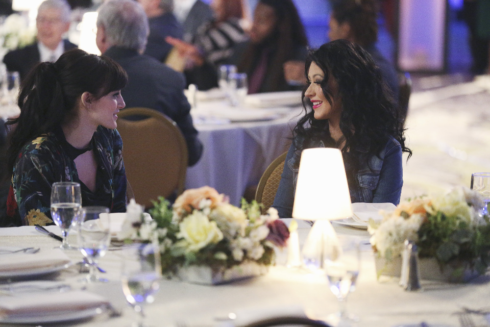 NASHVILLE - "The Storm Has Just Begun" - The brightest stars of Nashville have gathered in support of Teddy's music education initiative, "Note By Note," where Juliette plans her return to the spotlight - and Layla finds herself thrust into it - alongside Jade St. John. At the gala, Rayna, Deacon, Maddie and Daphne get ready to take the stage and perform, but before they can, Deacon receives the call he's been waiting for containing some life-changing news, on "Nashville," airing WEDNESDAY, APRIL 22 (10:00-11:00 p.m., ET) on the ABC Television Network. (ABC/Mark Levine)AUBREY PEEPLES, CHRISTINA AGUILERA