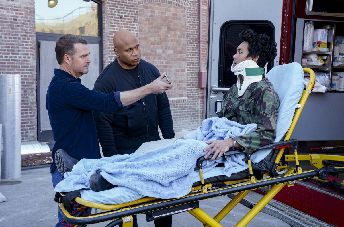 NCIS: Los Angeles stars Chris O’Donnell (Special Agent G. Callen), LL COOL J (Special Agent Sam Hanna), Linda Hunt (Operations Manager Henrietta “Hetty” Lange), Daniela Ruah (Special Agent Kensi Blye), Eric Christian Olsen (LAPD Detective Marty Deeks), Barrett Foa (Tech Consultant Eric Beale), Renée Felice Smith (Intelligence Analyst Nell Jones), Medalion Rahimi (Special Agent Fatima Namazi), and Caleb Castille (Special Agent Devin Rountree).