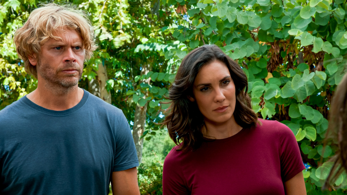 "Fukushu" - Pictured: Eric Christian Olsen (LAPD Liaison Marty Deeks) and Daniela Ruah (Special Agent Kensi Blye). NCIS takes the case personally when an LAPD officer's father, a beloved elderly Japanese American veteran, is the victim of a vicious hate crime, on NCIS: LOS ANGELES, Sunday, Oct. 17 (9:00-10:00 PM, ET/PT) on the CBS Television Network and available to stream live and on demand on Paramount+. Photo: Screen Grab/CBS ©2021 CBS Broadcasting, Inc. All Rights Reserved.