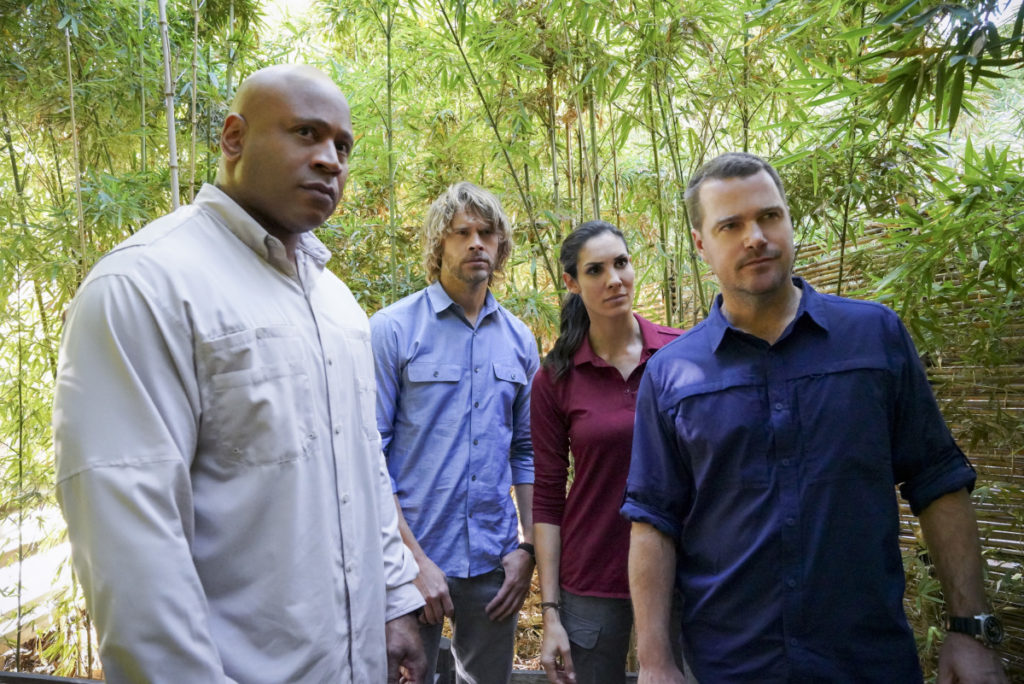 NCIS: Los Angles stars Chris O’Donnell (Special Agent G. Callen), LL COOL J (Special Agent Sam Hanna), Linda Hunt (Henrietta “Hetty” Lange), Daniela Ruah (Special Agent Kensi Blye), Eric Christian Olsen (LAPD Detective Marty Deeks), Barrett Foa (Tech Operator Eric Beale), Renée Felice Smith (Intelligence Analyst Nell Jones), and Nia Long (Executive Assistant Director Shay Mosley).