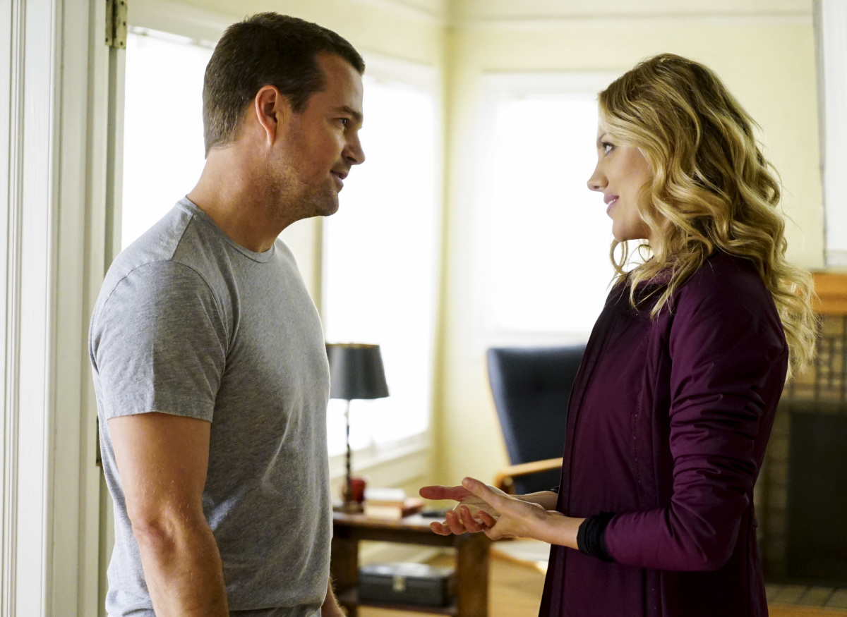 “Kulinda” – Pictured: Chris O'Donnell (Special Agent G. Callen) and Bar Paly (Anna). After a Navy reservist is killed while protecting a City Councilman, Sam is sent undercover in a private security firm with links to several criminal organizations. Also, Callen and Anna (Bar Paly) discuss the next steps in their relationship, on NCIS: LOS ANGELES, Sunday, Jan. 8, 2017 (8:00-9:00 PM, ET/PT), on the CBS Television Network. Photo: Sonja Flemming/CBS ©2016 CBS Broadcasting, Inc. All Rights Reserved.