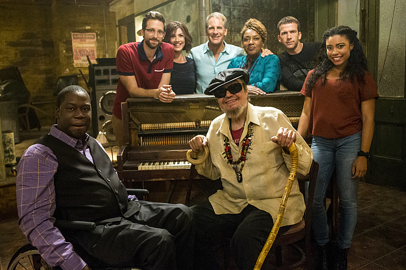 "Sic Semper Tyrannis" -- Behind the scenes of the CBS series NCIS: NEW ORLEANS, scheduled to air on the CBS Television Network. Pictured L-R: Daryl Chill Mitchell, Rob Kerkovich, Zoe McLellan, Scott Bakula, Grammy Award-winning artist Dr. John, CCH Pounder, Lucas Black, and Shalita Grant Photo: Skip Bolen/CBS é2015 CBS Broadcasting, Inc. All Rights Reserved