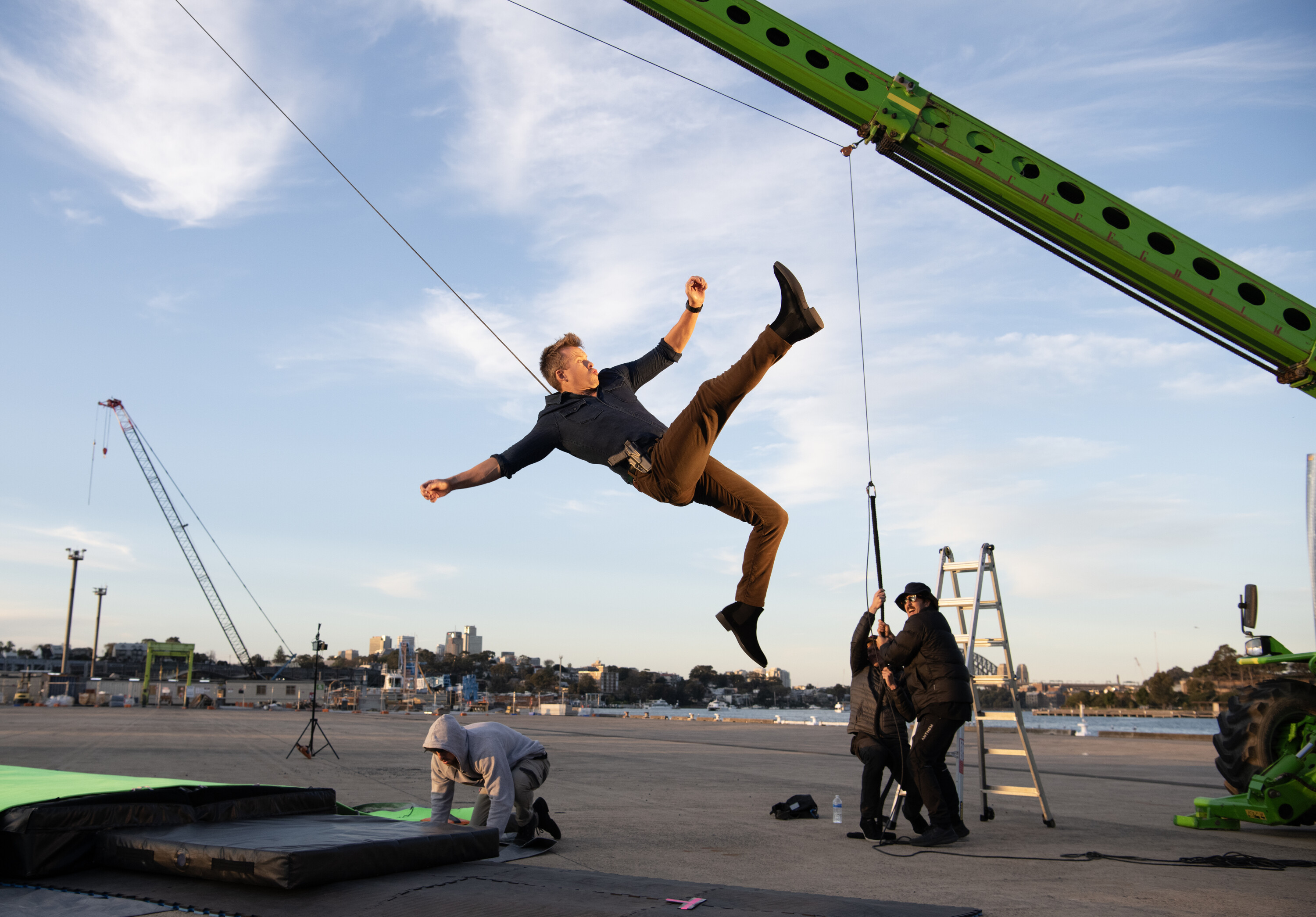 “Blonde Ambition” – When JD’s (Todd Lasance) son is kidnapped by an international assassin in exchange for a wanted criminal in NCIS custody, the team frantically tries to get his son back safely without trading in a criminal, on the first season finale of the CBS Original series NCIS: SYDNEY, Tuesday, Jan. 23 (8:00-9:00 PM, ET/PT) on the CBS Television Network, and streaming on Paramount+ (live and on demand for Paramount+ with SHOWTIME subscribers, or on demand for Paramount+ Essential subscribers the day after the episode airs)*. Pictured: BTS of Todd Lasance as AFP Liaison Officer Sergeant Jim 'JD' Dempsey on the set of NCIS: Sydney, episode 8, season 1, streaming on Paramount+, 2023. PHOTO CREDIT: Daniel Asher Smith/Paramount+