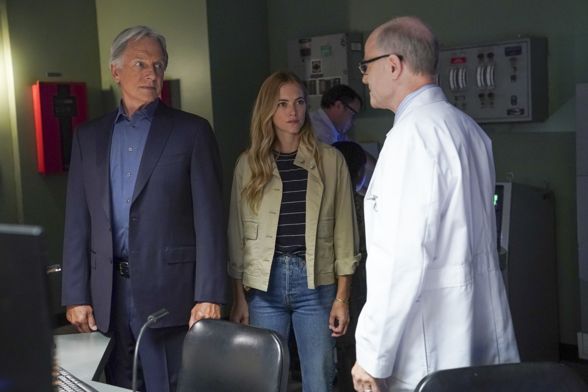NCIS stars Mark Harmon (NCIS Special Agent Leroy Jethro Gibbs), Sean Murray (NCIS Special Agent Timothy McGee), Emily Wickersham (NCIS Special Agent Eleanor “Ellie” Bishop), Wilmer Valderrama (NCIS Special Agent Nicholas “Nick” Torres), Maria Bello (NCIS Special Agent Jaqueline “Jack” Sloane), Brian Dietzen (Dr. Jimmy Palmer), Diona Reasonover (Forensic Scientist Kasie Hines), Rocky Carroll (NCIS Director Leon Vance), and David McCallum (Dr. Donald “Ducky” Mallard).