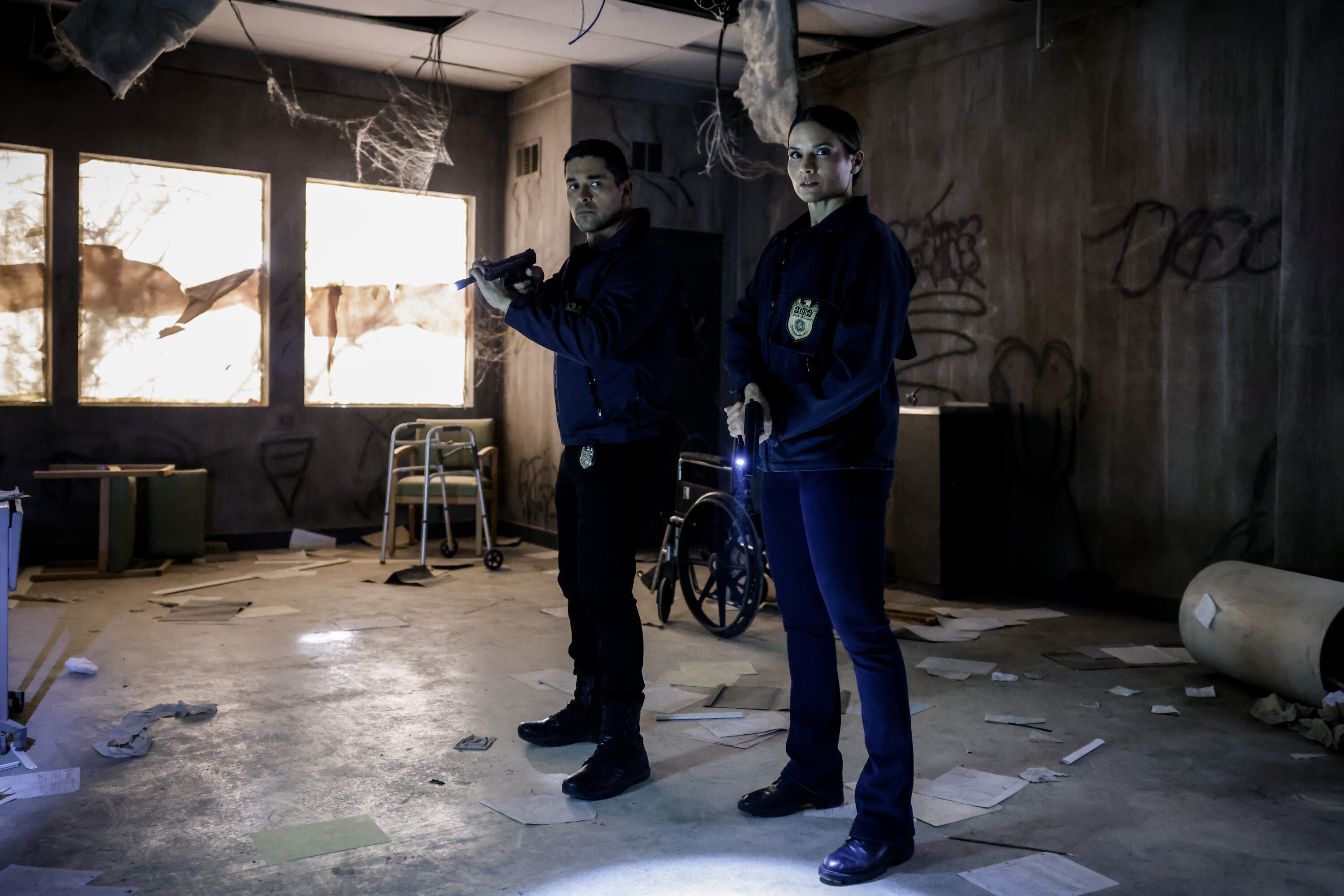 “Nexus” – As NCIS investigates a dangerous connection between the Nexus cartel and Parker’s longtime nemesis, mob boss Carla Marino, the team uncovers a high-stakes plot involving stolen nuclear material. With time running out, Parker is forced into an uneasy alliance that could determine the fate of the operation – and his own future, on the 22nd season finale of the CBS Original series NCIS, Monday, May 5 (9:00-10:00 PM, ET/PT) on the CBS Television Network, and streaming on Paramount+ (live and on-demand for Paramount+ with SHOWTIME subscribers, or on-demand for Paramount+ Essential subscribers the day after the episode airs)*. Pictured (L-R): Wilmer Valderrama as NCIS Special Agent Nicholas “Nick” Torres and Katrina Law as NCIS Special Agent Jessica Knight. Photo: Sonja Flemming/CBS ©2025 CBS Broadcasting, Inc. All Rights Reserved.