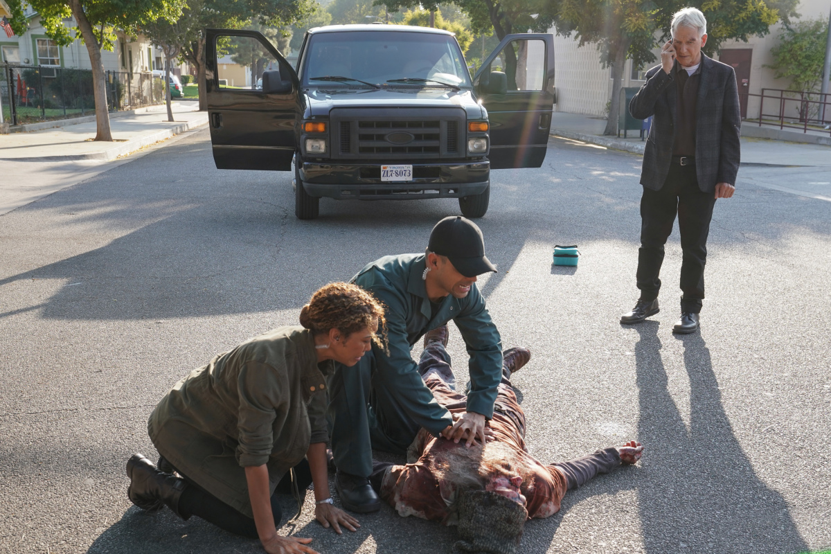 "Sturgeon Season" -- Gibbs and Fornell (Joe Spano) attempt to track down the leader of a drug ring who supplied drugs to Fornell's daughter. Also, the team deals with the case of a missing cadaver from the NCIS autopsy room, on the 18th season premiere of NCIS, Tuesday, Nov. 17 (8:00-9:00 PM, ET/PT) on the CBS Television Network. Pictured: Victoria Platt as NCIS Special Agent Veronica "Ronnie" Tyler,Wilmer Valderrama as NCIS Special Agent Nicholas "Nick" Torres, Mark Harmon as NCIS Special Agent Leroy Jethro Gibbs. Photo: Sonja Flemming/CBS ©2020 CBS Broadcasting, Inc. All Rights Reserved.