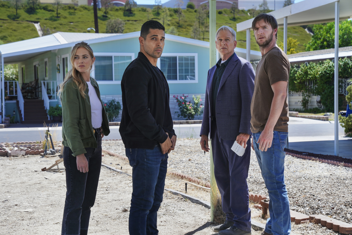 NCIS stars Mark Harmon (NCIS Special Agent Leroy Jethro Gibbs), Sean Murray (NCIS Special Agent Timothy McGee), Emily Wickersham (NCIS Special Agent Eleanor “Ellie” Bishop), Wilmer Valderrama (NCIS Special Agent Nicholas “Nick” Torres), Maria Bello (NCIS Special Agent Jaqueline “Jack” Sloane), Brian Dietzen (Medical Examiner Jimmy Palmer), Diona Reasonover (Forensic Scientist Kasie Hines), Rocky Carroll (NCIS Director Leon Vance), and David McCallum (Dr. Donald “Ducky” Mallard).