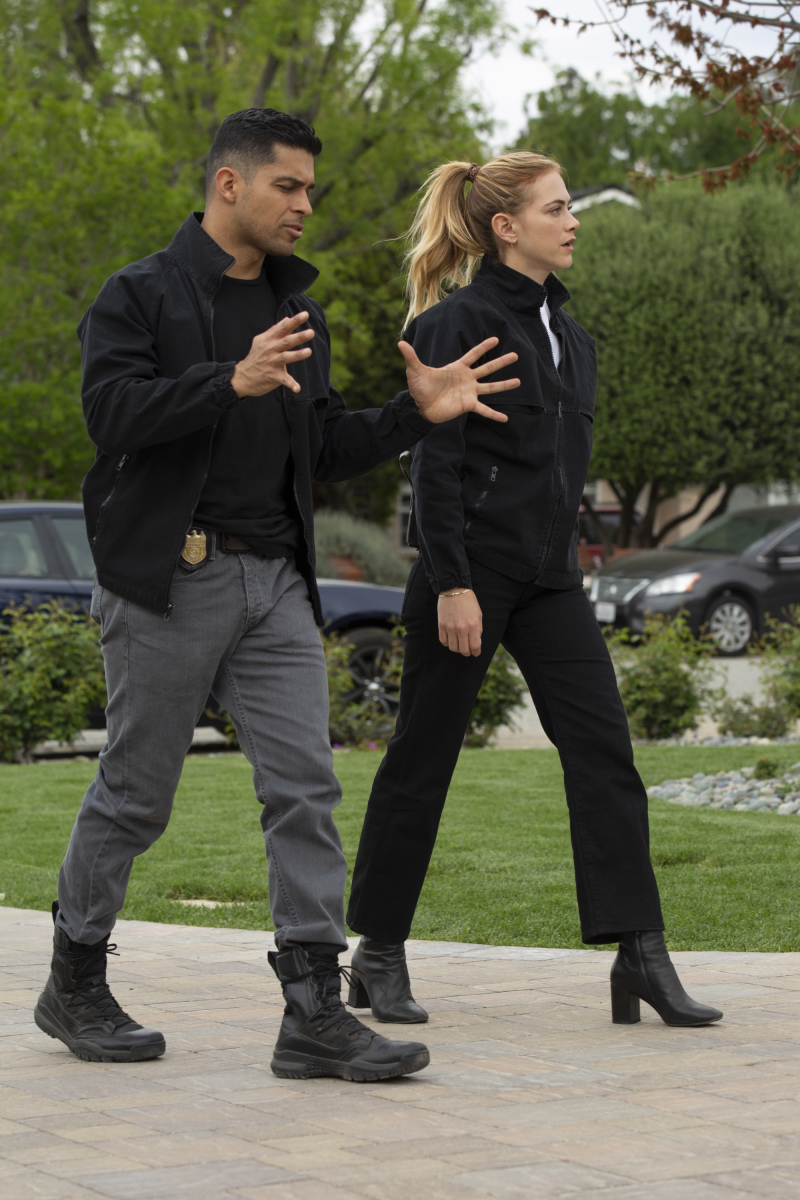 â∠ÂLost Timeââ¬àââ¬" The NCIS team investigates the murder of a Marine Sergeant in the States who was hailed as a war hero for his efforts overseas. Also, Gibbs turns to Doctor Grace Confalone (Laura San Giacomo) for advice after he uncharacteristically unravels and abandons his team at a crime scene investigation, on NCIS, Tuesday, May 14 (8:00-9:00 PM, ET/PT) on the CBS Television Network. Pictured: Wilmer Valderrama as NCIS Special Agent Nicholas â∠ÂNickââˆTorres, Emily Wickersham as NCIS Special Agent Eleanor â∠ÂEllieââˆBishop. Photo: Michael Yarish/CBS ÃÂé2019 CBS Broadcasting, Inc. All Rights Reserved