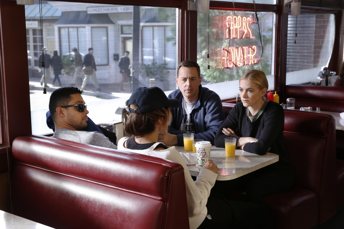 "M.I.A" -- To carry out a sailor's dying wish, Gibbs and the NCIS team re-investigate a murder case that was originally ruled an accidental death. Also, the case reminds Torres of a tragic time from his past, on NCIS, Tuesday, March 14 (8:00-9:00 PM, ET/PT) on the CBS Television Network. Pictured: Wilmer Valderrama, Jennifer Esposito, Sean Murray, Emily Wickersham. Photo: Cliff Lipson/CBS é2017 CBS Broadcasting, Inc. All Rights Reserved