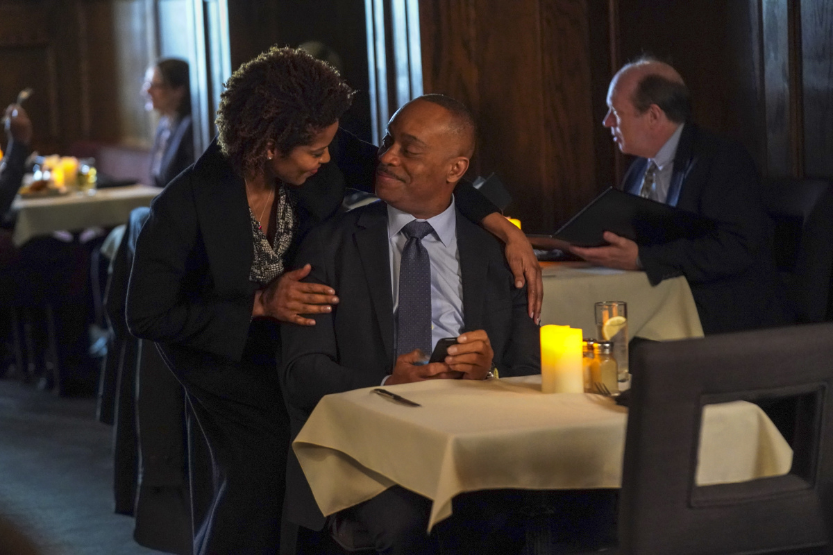 "Mona Lisa" -- Torres relies on his team's investigative skills after he wakes up on a dilapidated fishing boat, covered in blood and unable to remember the last 12 hours, on NCIS Tuesday, April 2 (8:00-9:00 PM, ET/PT) on the CBS Television Network. Pictured: Dionne Gipson, Rocky Carroll, Photo: Sonja Flemming/CBS ©2019 CBS Broadcasting, Inc. All Rights Reserved