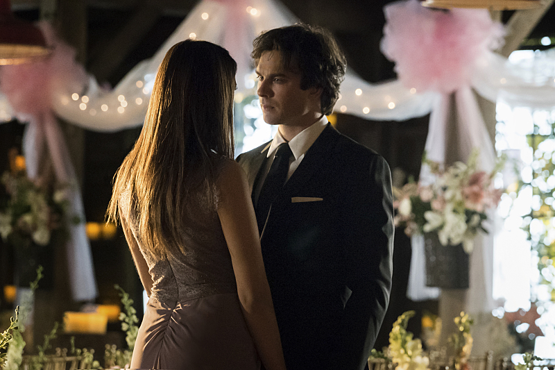 ALARIC AND JO’S BIG DAY — It’s Alaric (Matt Davis) and Jo’s (guest star Jodi Lyn O’Keefe) wedding day and Elena (Nina Dobrev) and Bonnie (Kat Graham) do their best to help a stressed out Jo with the last minute preparations. After uncovering some life-changing news that Damon (Ian Somerhalder) has been keeping from him, Stefan (Paul Wesley) takes his brother on a road trip to give him some perspective on his future with Elena. Elsewhere, when Caroline (Candice Accola) returns to Mystic Falls after dealing with the fallout of her humanity-free rampage, she begins making amends with her friends and comes to a realization about her and Stefan’s prospects of being together. Finally, when Bonnie begins having vivid nightmares that Lily (guest star Annie Wersching) is coming after her, she enlists Matt’s (Zach Roerig) help in taking Lily down. Michael Trevino and Michael Malarkey also star. Michael Allowitz directed the episode written by Brian Young (#621). Original airdate 5/7/2015.