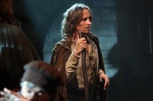 It sounds like Belle is back for this one, and while she’s there, she’s threatening to leave Mr. Gold if he keeps chasing power. In the fairy tale past, Rumplestiltskin tries to save his wife from a band of cutthroat pirates, and I’d assume that’s where Captain Hook comes in.