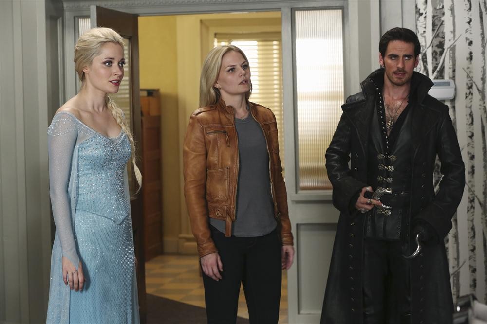 ONCE UPON A TIME - "Rocky Road" - When an icy spell is cast on Marian, which will ultimately freeze her heart and kill her, the Storybrooke residents place the blame on Elsa. But unbeknownst to anyone, a mysterious woman who runs the town's ice cream parlor has the same powers as Elsa and is trying to frame her. Emma and David find former Merry Men member Will Scarlet rummaging through Robin Hood's tent, Regina teams up with Henry to try and discover who the author of the fairy tale book is, Mary Margaret is having trouble balancing her duties as leader of Storybrooke and mother to young Prince Neal, and Hook begins to suspect that Mr. Gold is still in control of the dagger that calls upon him to be the Dark One. Meanwhile, in Arendelle of the past, Elsa and Kristoff set off to stop Hans from attempting to take control of the kingdom, on "Once Upon a Time," SUNDAY, OCTOBER 12 (8:00-9:00 p.m., ET) on the ABC Television Network. (ABC/Jack Rowand) GEORGINA HAIG, GINNIFER GOODWIN, COLIN O'DONOGHUE