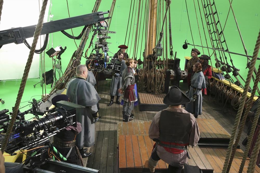 ABC has released a lot of photos from this episode, including some Regina/Robin Hood action, some “Captain Swan,” Emma and Elsa, and a whole lot of behind the scenes stuff, mostly happening on the pirate ship with Blackbeard and characters from Frozen. Enjoy: