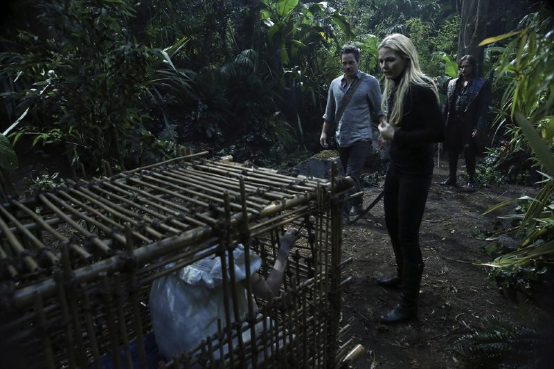 ONCE UPON A TIME - "Think Lovely Thoughts" - Pan leads Henry to a secret cave, where he has convinced the boy that he alone can save magic and Neverland itself. But a showdown between good and evil is about to go down as Emma, Mary Margaret, David, Regina, Mr. Gold and Hook find themselves directly on a path to Pan in an effort to save Henry. Meanwhile, back in the Fairy Tale Land that was, young Rumplestiltskin is given a magical item that could help him make a fresh start with his father -- who has been anything but a good dad, on "Once Upon a Time," SUNDAY, NOVEMBER 17 (8:00-9:00 p.m., ET) on the ABC Television Network. (ABC/Jack Rowand) FREYA TINGLEY (IN CAGE), MICHAEL RAYMOND-JAMES, JENNIFER MORRISON, ROBERT CARLYLE