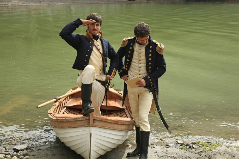 ONCE UPON A TIME - "Good Form" - With the deadly Dreamshade coursing through David's body and close to death, Hook takes him on one last journey to find a sextant that could help them decipher a map that would lead them off Neverland. Meanwhile, in the Fairy Tale Land that was, Killian Jones - aka Hook - and his brother, Captain Liam, sail off under orders of the King to find a powerful indigenous plant on an uncharted land that could help heal any injury, on "Once Upon a Time," SUNDAY, OCTOBER 27 (8:00-9:00 p.m., ET) on the ABC Television Network. (ABC/Jack Rowand) COLIN O'DONOGHUE, BERNARD CURRY