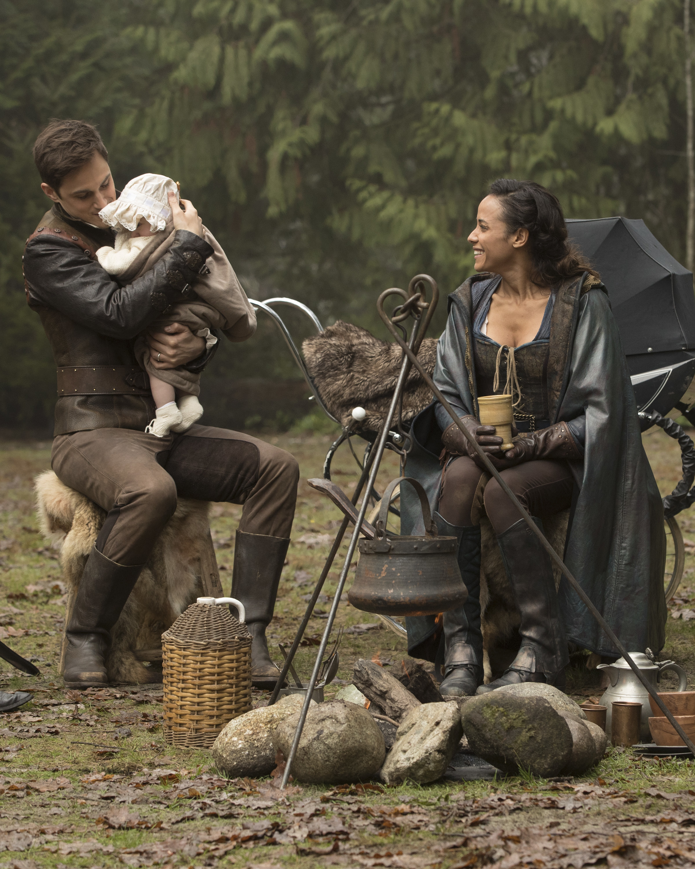 Once Upon a Time stars Lana Parrilla as Regina/Roni, Robert Carlyle as Rumpelstiltskin/Weaver, Colin O’Donoghue as Hook/Rogers, Andrew J. West as Henry Mills, Gabrielle Anwar as Lady Tremaine/Victoria Belfrey, Dania Ramirez as Cinderella/Jacinda, Alison Fernandez as Lucy, and Mekia Cox as Sabine/Tiana.