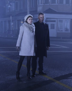 EK: I think that they get along fine. I think that Emma is very sensitive to Regina seeing Robin or what appears to be Robin, and I think Regina is also very sensitive to the fact that Emma has been prophecized to die. The pilot started out with the two of them at each other’s throats, and six years later, they’ve really come together as friends. We see that Regina and Emma and Snow and Charming and Henry, they’ve all formed this core team, and I think that they all support and give each other strength.