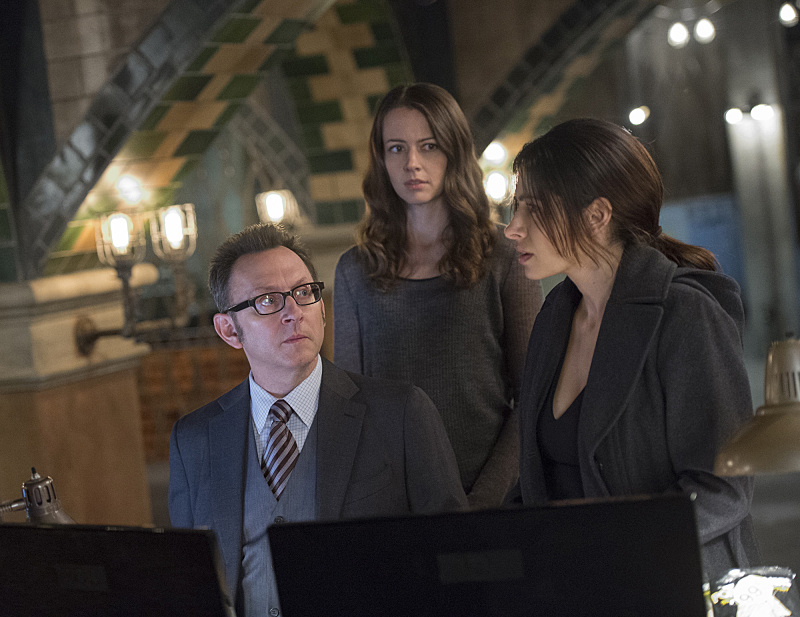 "The Cold War" -- Samaritan shows its power by erasing crime from the city for a day in an attempt to force The Machine out of hiding, on PERSON OF INTEREST, Tuesday, Dec. 16 (10:01-11:00 PM, ET/PT) on the CBS Television Network. Pictured left to right: Michael Emerson, Amy Acker and Sarah Shahi Photo: John Paul Filo/CBS ©2014 CBS Broadcasting Inc. All Rights Reserved.