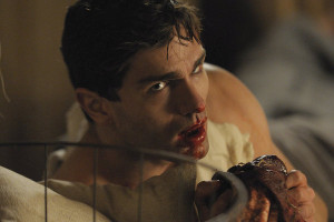 Aidan brings the skinless Henry back to his house to recuperate, which also involves using his Jedi-Vamp mind powers to convince two women to come over, think Henry is hot, and have some sexy time with him as he sucks their blood. The mind trick breaks too soon, though, and they see Henry for the skinless vampire he is. To keep their secret, Aidan snaps both of their necks, but kicks the healed Henry out of the house because of the guilt. In flashbacks to World War I, Aidan was shot and Henry was a military doctor. Henry witnesses Aidan heal quickly, but keeps his secret, while a French soldier sees him drink blood and calls him out on being a vampire. The soldier tries to stake Aidan, but during the confrontation Henry is staked instead. Aidan vamps-out and slaughters the entire tent, takes Henry to safety, and turns him to save his life and repay him for his protection. He also forces him to eat a live human, confirming his creation.