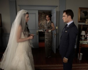 Let’s begin with the main storyline of the episode – the wedding. Ever since the beginning of this season, I was hoping that the wedding would turn out to be a disaster, that Blair, who I sees as one of the show’s (sometime) smartest women, would come to realization that Louis was just an evil frog and not a warm-hearted prince and reunite with the love of her life – Chuck Bass.