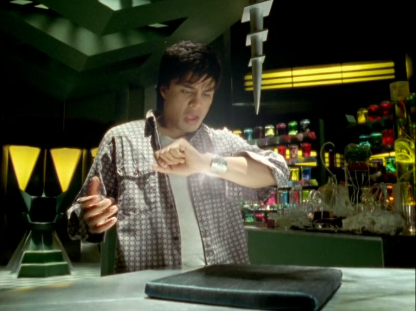 But Trent has already been set-up as a tragic character with a complex relationship with his father, who is all-but-confirmed to either be Mesagog or Zeltrax here (and if you pay attention to the credits…well…it’s obvious which.) But in any case, Trent’s human story slowly crept in as the most interesting aspect of the season, only to be put on the backburner in favor of the White Ranger counterpart. Granted, Trent gets good material in the opening of part one, re-establishing the shaky relationship with his father. Shades of what we saw in “Golden Boy” are present here, in that Trent totally defends his father’s ban on his drawing, only because he knows deep down his father is looking out for him, in his own way. Hayley and Trent’s relationship is also a standout; as her employee, we get Trent integrated in the core group long before he’s a Ranger. As his employer, we see how caring and sensible Hayley is to everyone, not just to the superheroes. Those are both key to his storyline; his father’s carelessness, of course, is the whole reason Trent finds his way into Mesagog’s lair and gets the gem stuck to himself, and Hayley is the first one to notice that something is up with him. Once Trent turns into the White Ranger for the first time, he’s mostly relegated to stumbling around and sweating — a clearly painful and terrible way to become a Ranger, but one that’s not terribly interesting to watch after the first couple of scenes.