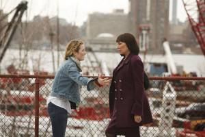 It’s rather hard to distinguish just what the reasoning was in bringing in Eileen (Anjelica Huston) and Jerry’s daughter Katie. It was as random a move as Ivy’s mom showing up for a single episode and far less effective in offering anything new to either Eileen’s story or the divorcing couple’s dynamic. Once again we’re left with the two jawing at each other over money and not a single advancement of either their relationship or the money situation. Eileen declares, once more, that she doesn’t need anything from Jerry. Even more troubling was a the unnecessary scene where Eileen brings Katie to the Bushwhack and introduces her to Nick the bartender. There are so many times when it seems like they have no idea what to do with Eileen but they’ve got Anjelica Huston so they don’t want to waste her cachet. Sadly, they do so more than not and even though I liked ultimately how she felt bad for conspiring with Derek behind Tom’s and Julia’s backs, despite her intentions, it felt like a bit of a cop-out to give her conscious to her previously unmentioned and unseen daughter. Mamie Gummer’s performance did nothing to help make this go down any better either. The one moment where the two connected well was in the end after Katie has decorated Eileen’s new place and as the younger character is shuffling out the door.