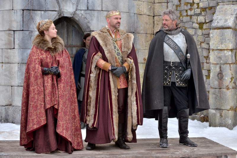 Reign -- "Long Live the King" -- Image Number: RE121a_0126.jpg -- Pictured (L-R): Megan Follows as Queen Catherine, Alan Van Sprang as King Henry and Gil Darnell as the The Duke of Guise -- Photo: Ben Mark Holzberg/The CW -- © 2014 The CW Network, LLC. All rights reserved.