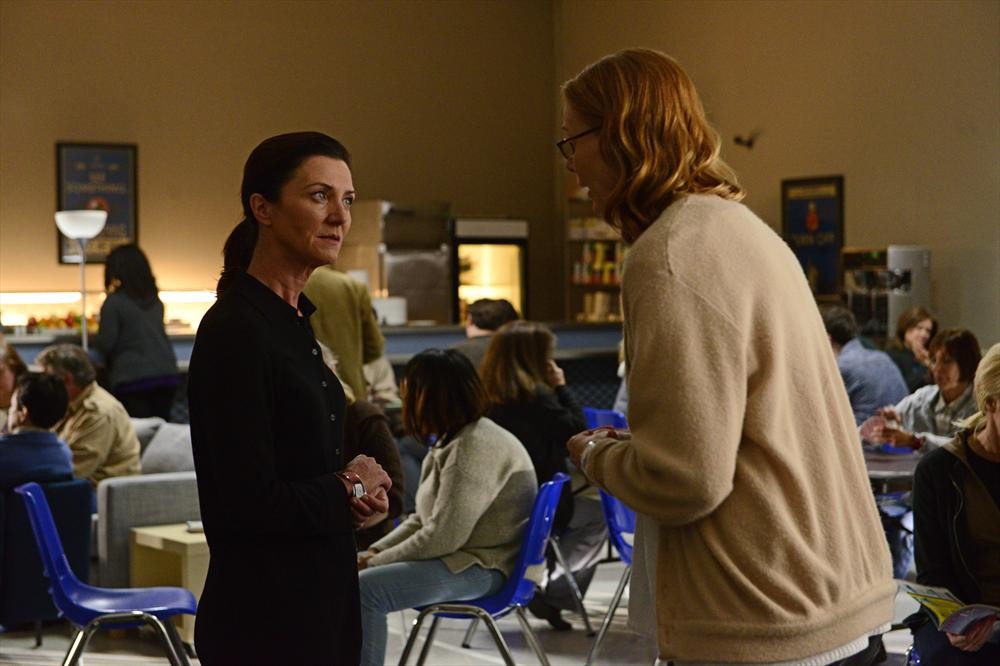RESURRECTION - "Steal Away" - After a series of inexplicable events, Bellamy fears for the safety of Rachael and her unborn child. Preacher James predicts that the baby's birth will unleash an ancient evil. Margaret rallies the Returned at the government facility and forms an uneasy alliance with Preacher James, and Bellamy's government contact (Donna Murphy) warns that something big is on the horizon, in the penultimate episode of "Resurrection," SUNDAY, JANUARY 18 (9:01-10:01 p.m. ET) on the ABC Television Network. (ABC/Guy D'Alema) MICHELLE FAIRLEY, CHERYL WHITE